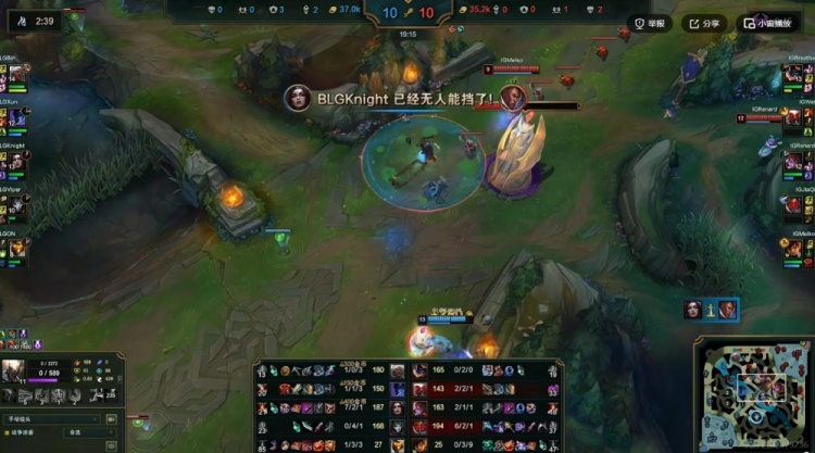 首局比赛BLG选了个相当“高手”的阵容,但是一波越下失败送给JiaQi卢锡安三杀帮助iG下路组拿到优势!中期iG连续拿龙+强杀Viper烬,而BLG团战这边依靠上中尽力操作,让knight乐芙兰收割超神!但是关键的小龙团knight乐芙兰想poke直接白给,iG收下小龙+大龙拿下经济优势!随后ON巴德又在团前被抓送出风龙魂给iG!决胜的中路团Bin安蓓萨空大,BLG没有秒掉JiaQi卢锡安反而是乐芙兰被集火秒了!iG赢团从中路一波结束比赛!先拿一分!