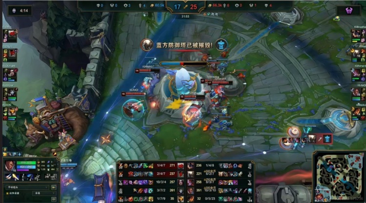 【27:16】Renard阿萝拉在下路河道白给,knight乐芙兰又收到了终结赏金!BLG还拆掉了iG的中一塔!