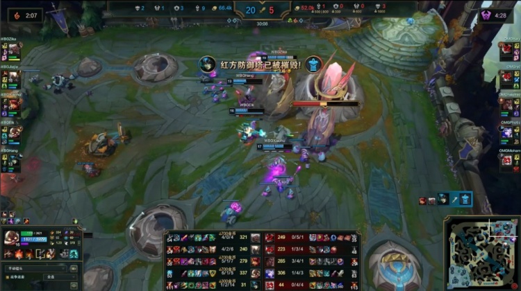 中期re0赵信与队友脱节被卖,虽然OMG率先听牌火龙但难取龙魂,WBG一路将经济优势扩大至1w以上。随后WBG在野区与资源团连续打出胜利,顺势控下龙与大龙,彻底掌握比赛节奏。