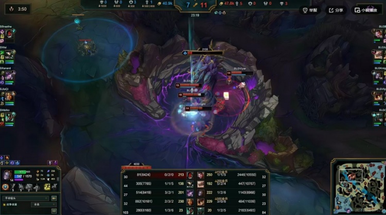【5:07】野辅包上,BLG三人强杀Breathe约里克,一血给到了Xun纳亚菲利!