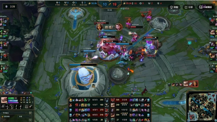 【22:09】小龙团,BLG拿下小龙!后续团战ON坐先锋给控制,闪现Q配合Xun纳亚菲利先击杀Meiko卡尔玛!随后Xun纳亚菲利爆吼锁头进人群带球让knight发条大招打出爆炸AOE!BLG的纯poke阵逐个击破打出0换5团灭iG,拆掉下路高地塔,回头拿下大龙!经济差瞬间接近8K!