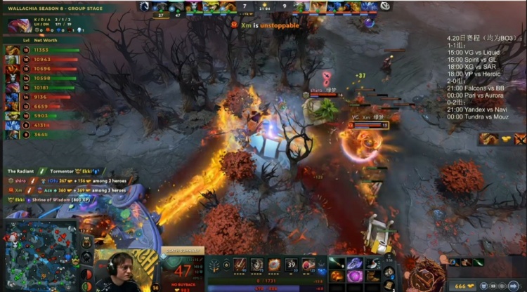 47分钟Liquid先拿魔晶,随后肉山团XinQ蝙蝠拉盘子自己被秒,但是Xm+y队两人交出买活,Xm火猫瞬间回到战场配合队友打出收割!Nisha女王再次倒下!VG拿下肉山!Xm火猫带盾!