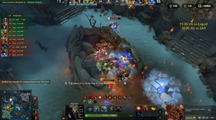 36分钟肉山团,Bach夜魔开大配合队友切到了Liquid后排!双酱油倒下之后冲锋的m1CKe钢背兽吃到冰魂大招白给了!VG两个残血的面对4000血的女王直接TP跑了!这波VG击杀Liquid四人,拿下二代肉山!shiro小小带盾!