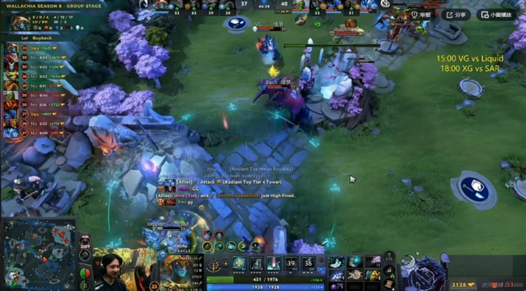 41分钟Nisha女王下路被VG抱团逮捕,VG已经反超经济了!随后VG抱团站上高地,但是shiro小小不开BKB结果被m1CKe钢背兽三下带走!Liquid反手上高但是XinQ蝙蝠拉住m1CKe钢背兽,VG少个大哥还是可以强杀!VG一波1换2之后劝退Liquid众人!