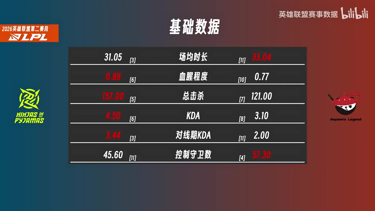 >NIP对阵AL赛前数据对比:NIP整体优于AL;Assum多项领先Hope