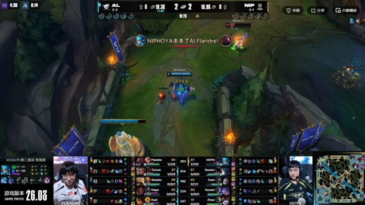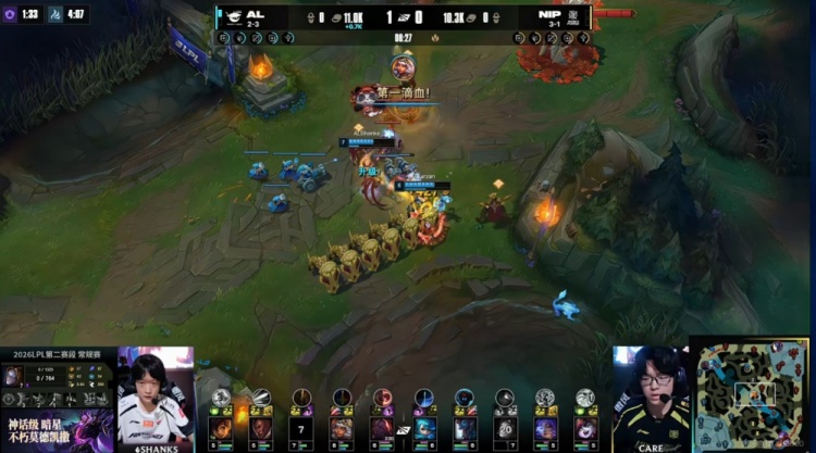 直播吧4月22日讯 2026年LPL第二赛段来到新的一周,今天的第二场比赛是AL对阵NIP!