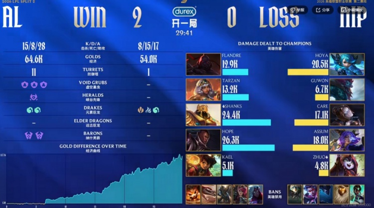 AL:上单Flandre、打野Tarzan、中单Shanks、下路Hope、辅助kael