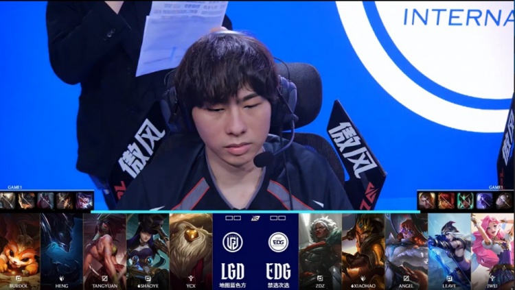 第一局前期Heng梦魇入侵EDG石头人,Xiaohao皇子2级与之对拼反送1血,Zdz与Angel支援过来击杀Heng。Heng随后再去上路联手Burdol纳尔逮捕Zdz安蓓萨。小龙团LGD双人组先后被杀,Tangyuan阿卡丽中路越塔单杀Angel阿萝拉,双方经济持平。