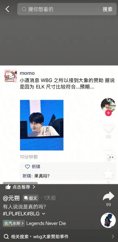 直播吧4月24日讯 近日WBG官宣了和赞助商“大象”(安全套品牌)的合作,有网友发文称:WBG接到大象赞助,据说因为ELK尺寸比较符合预期。