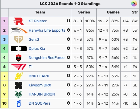 目前他们仅排在积分榜的第七位,而根据LCK规则只有积分榜前六才能进入季后赛。