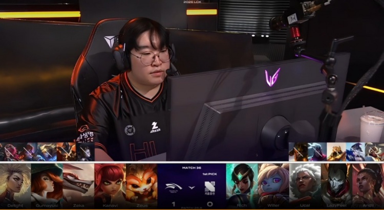 HLE:上单Zeus、打野Kanavi、中单Zeka、下路Gumayusi、辅助Delight