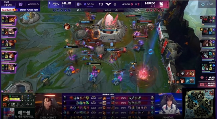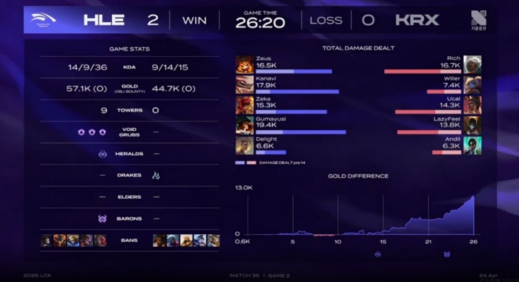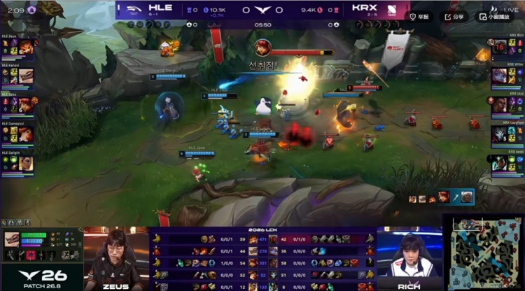 直播吧4月24日讯 2026年LCK常规赛继续进行,今天的第二场比赛是HLE对阵KRX!