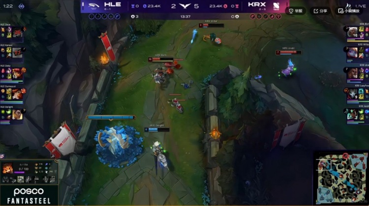 【7:20】野区遭遇HLE还想打,结果Ucal梅尔先到配合Willer波比拉扯,KRX反手回击又是0换2!