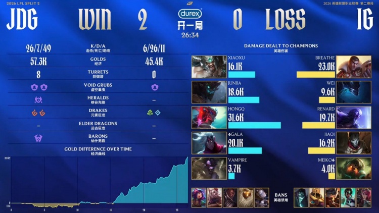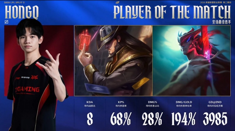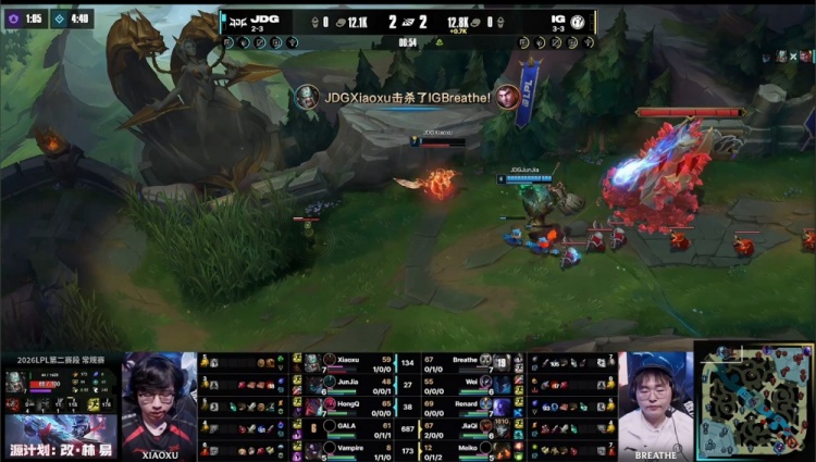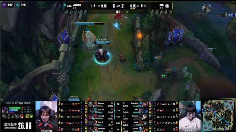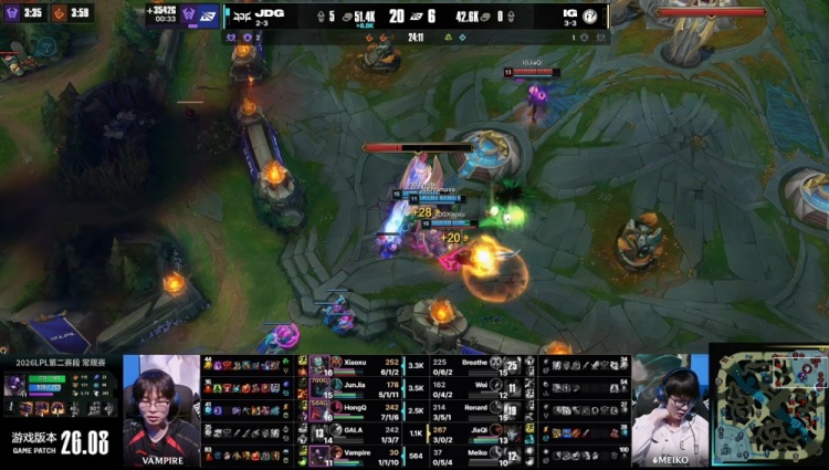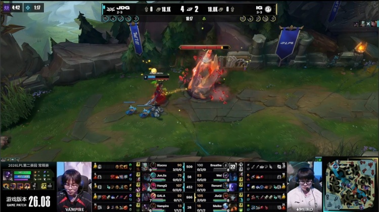 直播吧4月24日讯 2026LPL第二赛段常规赛组内赛继续进行,今日焦点之战JDG横扫iG!