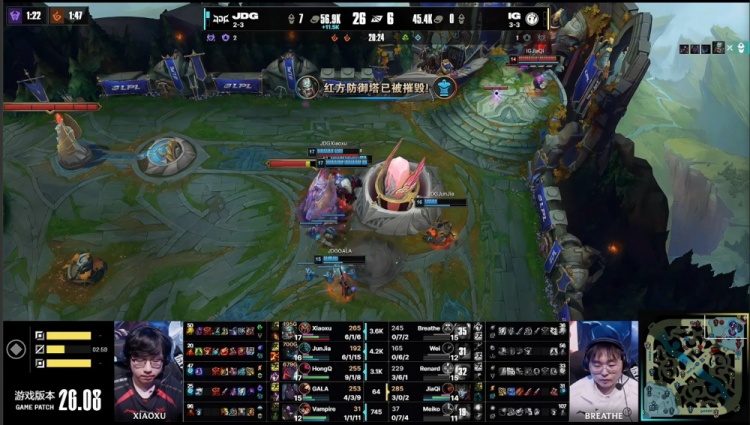 后期比赛失去悬念,正面iG毫无一战之力,HongQ永恩与小徐蛮王爆砍iG,JDG一波推平iG基地拿到比赛胜利。