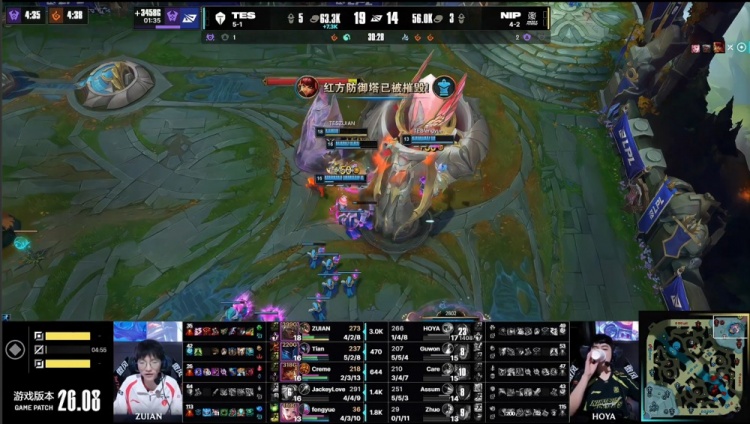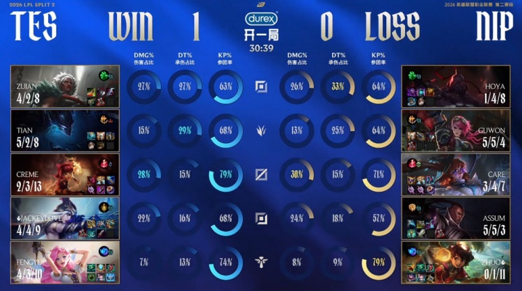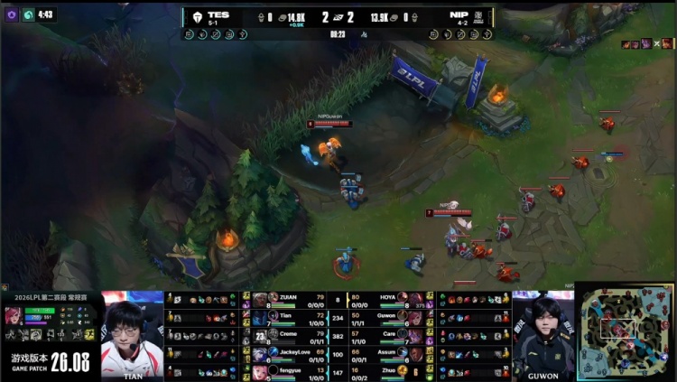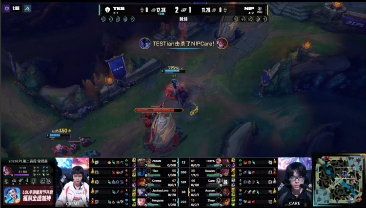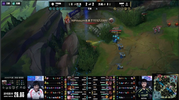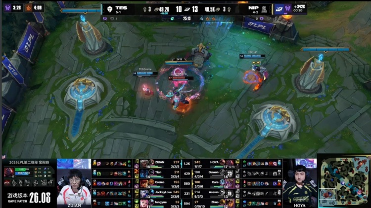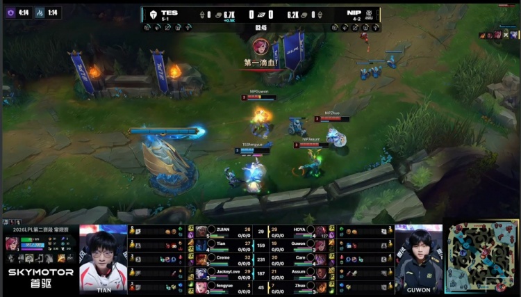 直播吧4月25日讯 2026LPL第二赛段常规赛组内赛继续进行,今日首场比赛由TES对阵NIP!
