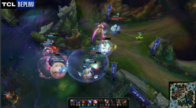 【15:34】河道团战,fengyue萨勒芬妮斜角R闪击中NIP两人,Assum卢锡安与fengyue互换,双方打出1换1,经济差距不大。