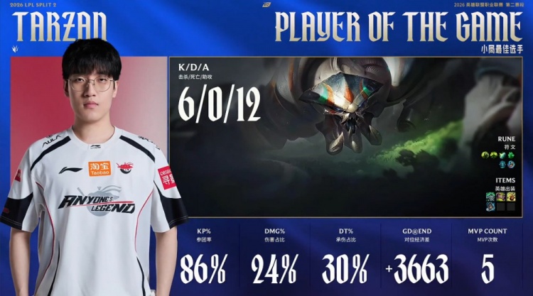 【22:39】龙魂团,hang妮蔻开三人但被Shanks沙皇击杀,Elk卡莎击杀王杰Ez,Tarzan推Zika兰博上墙送Shanks沙皇双杀,AL打出3换4,吃掉风龙魂,双方经济持平。