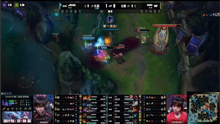第一局:🎮WE小场13连败!Tyrion难救主 徐神奎桑提进退自如 JDG赢首局