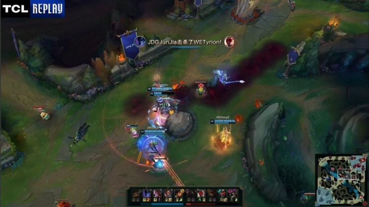 【25:21】JDG中路推进,小徐大纳尔轻松双杀,JDG打出0换3,一波推平WE基地拿到比赛胜利。