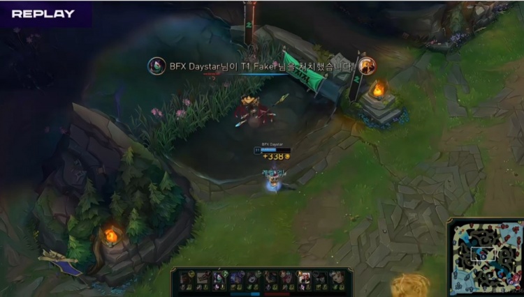 【12:15】下路大混战,BFX上野支援到位,双方最终打出2换2,但是同时中路Daystar阿卡丽本局连续第二次完成对Faker沙皇的对位单杀!