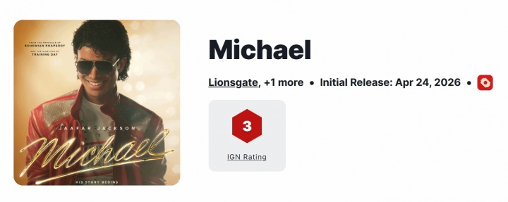 狮门影业的MJ传记片《迈克尔·杰克逊:巨星之路》《迈克尔·杰克逊:巨星之路》口碑解禁时,IGN评分仅3分。