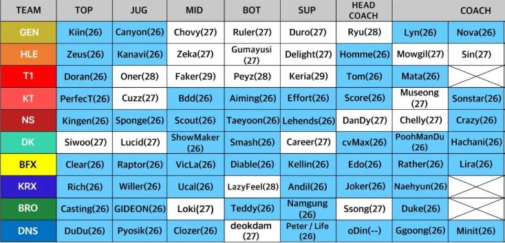 直播吧4月27日讯 LCK第二赛段进行中。韩网对LCK各支战队的名单和选手 的合同进行了整理,具体如下: