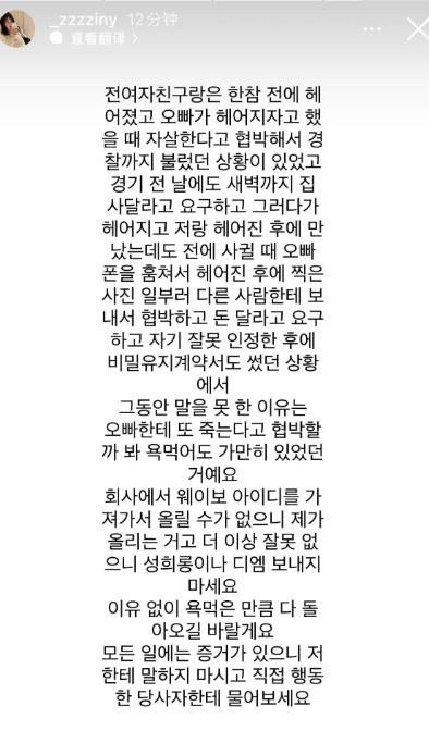 每次哥哥说要分手的时候,就用自杀来威胁,连JC都闹来的状况都有过,比赛前一天直到凌晨也在要求买房所以分手了。