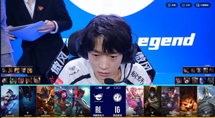 BP阶段:(第二局iG选择先ban先选,AL选择蓝色方)