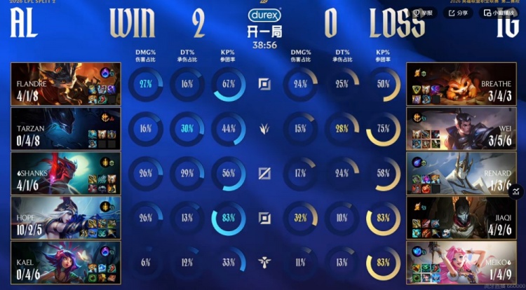 AL:上单Flandre、打野Tarzan、中单Shanks、下路Hope、辅助kael