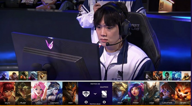 GEN:上单Kiin、打野Canyon、中单Chovy、下路Ruler、辅助Duro