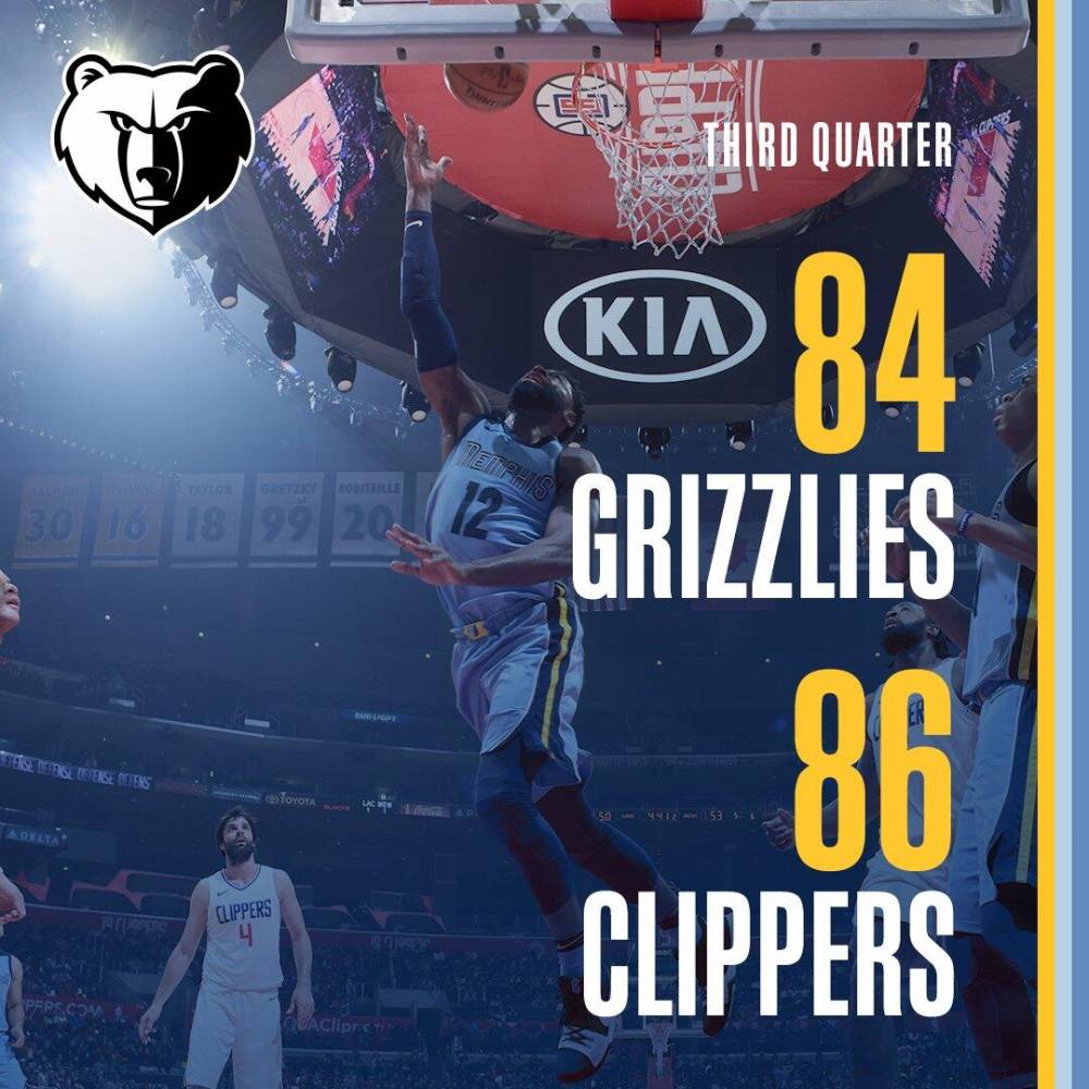 下半场,CJ-威廉姆斯再度完成抢断拿到两分,韦斯利约翰逊中投命中,格林上篮得手,埃文斯转身打进两分,小加索尔后仰跳投命中,CJ-威廉姆斯三分毫不手软,快船75-68继续领先。布鲁克斯急停跳投命中,查尔莫斯三分百步穿杨,快船连续失误,格林篮下连补进两球帮助灰熊78-75反超比分。查尔莫斯和小加索尔各罚两分,贾旺突破打进两分为快船止血,哈里森同样回敬两分,路威带领快船打出一波9-0的高潮以86-84领先结束第三节。