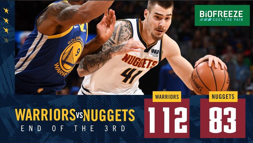 直播吧1月16日讯 NBA常规赛迎来西部榜首之争掘金对阵勇士,近来勇士状态大好已是拿到4连胜。开场后库里、克莱和杜兰特三人手感火热,不断在外线命中三分,勇士迅速建立起领先优势,不过依靠米尔萨普和穆雷的出色手感让掘金没有落后太多。第二节勇士替补也多点开花一度将领先优势扩大到21分,掘金通过约基奇和米尔萨普的内线强攻逐渐缩小分差,但勇士整体发挥出色在上半场结束时79-60仍旧领先掘金19分。下半场库里更是接连投进超远三分单节砍下17分帮助勇士三节过后建立起29分领先优势,第四节彻底沦为垃圾时间,最终勇士客场142-111大胜掘金取得5连胜的同时登上西部榜首的位置。