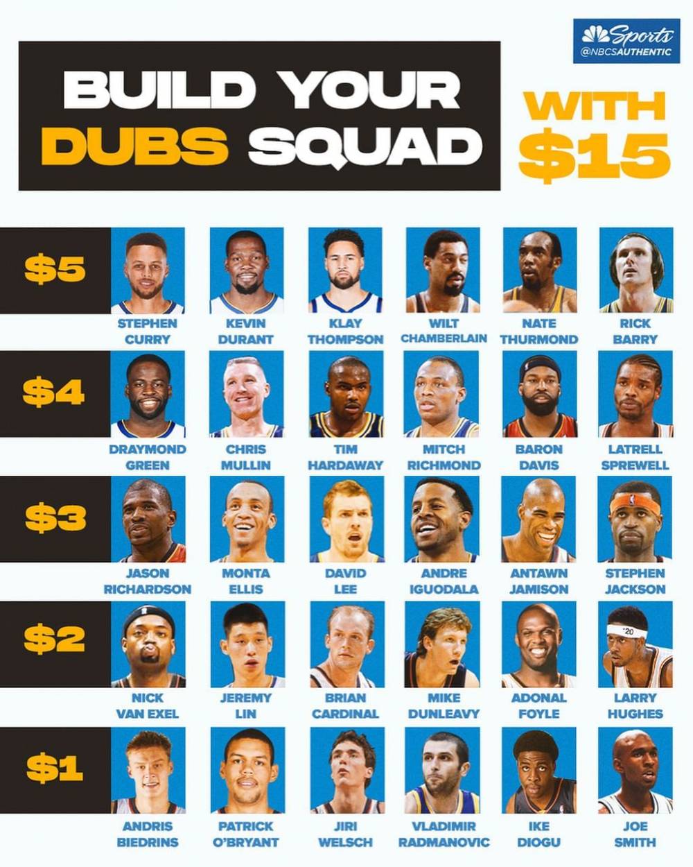 直播吧5月2日讯 湾区媒体NBC今日制作了一款“15美元选队员”勇士版图片。