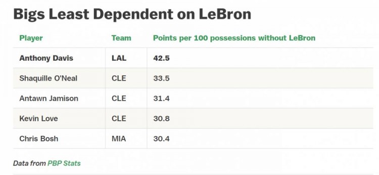 但和詹姆斯搭档过的大多数队友相比,浓眉又是非常特别的。他有强大的自主进攻能力,这让他对詹姆斯的依赖性要比其他人小得多。