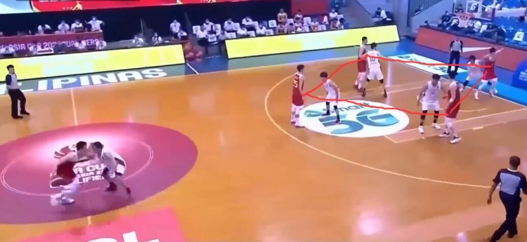 中国队往往在后卫运球过半场时,球员们就已经站好了钻石落位,防守球员一眼就能看出,并布置有针对性的防守策略。拿今年国家队在亚预赛中的表现来说,大量的钻石落位最终变成了内线球员强打——这是战术被针对没跑出机会,而时间上不允许再跑新战术的无奈之举。