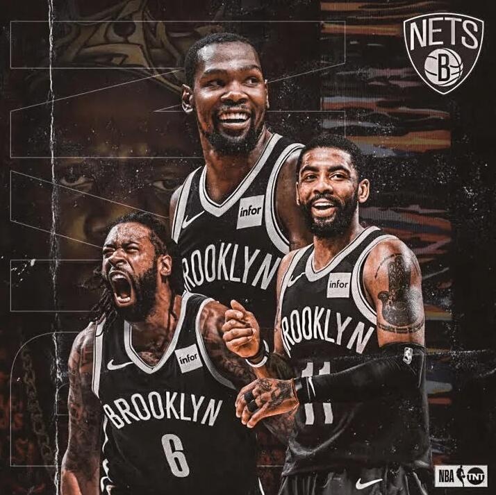 还记得这张宣传海报吧?这是两年前杜兰特、欧文和小乔丹刚刚去篮网桃园结义,球队出的官宣海报。当时,还没有哈登。
