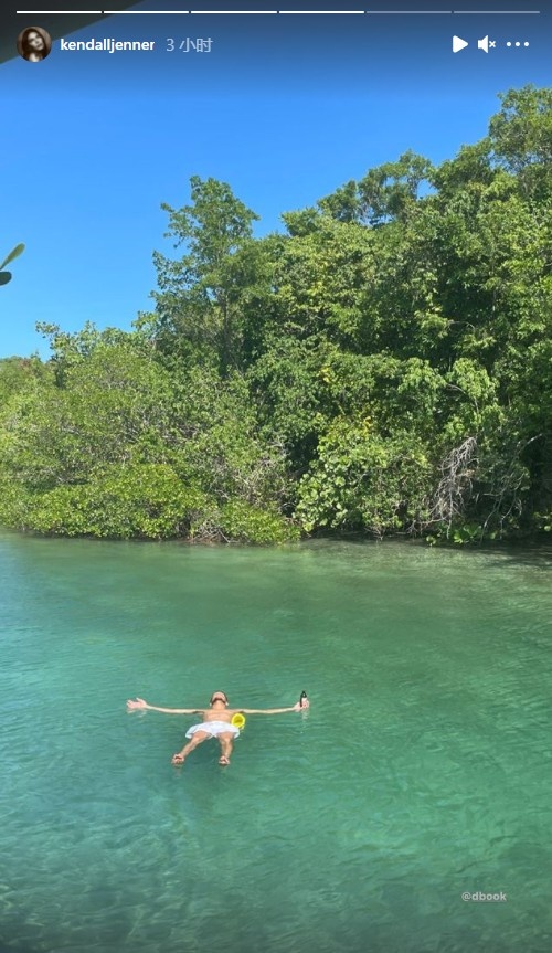 惬意假期!詹娜更新社媒晒布克平躺湖面照片