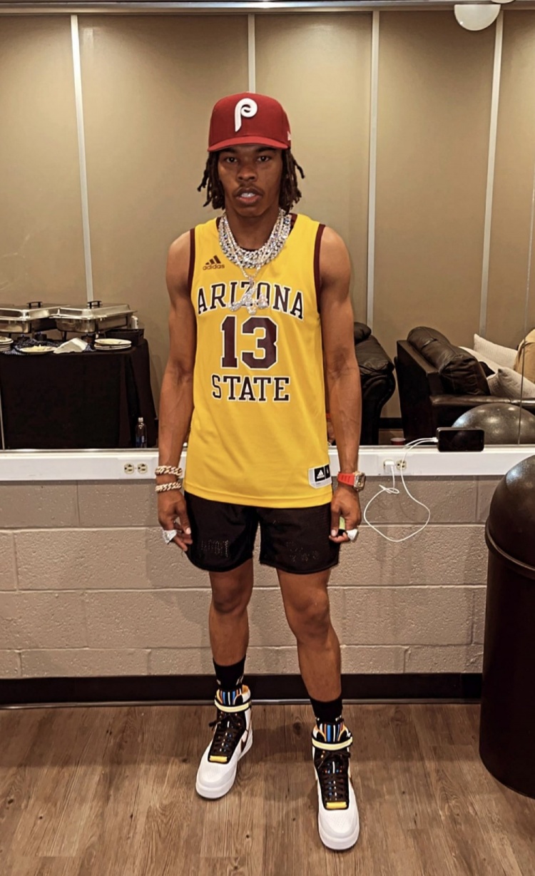直播吧9月24日讯 哈登的好友,同时也是著名说唱歌手Lil Baby今日穿上了哈登的大学球衣。