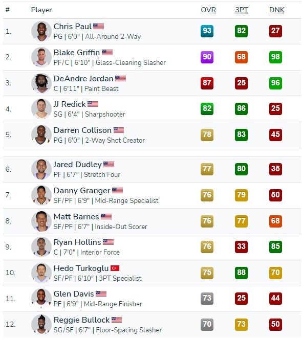2013-14赛季的快船就是经典球队之一,这支球队中,保罗能力值93,格里芬能力值90,小乔丹87。