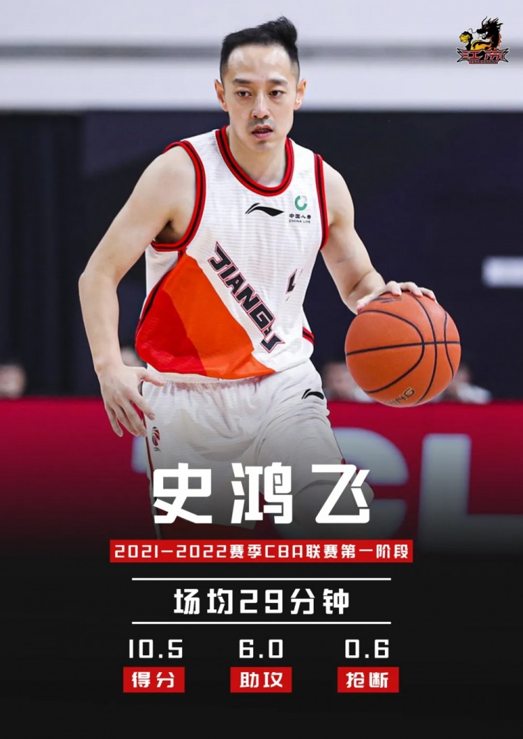 史鸿飞作为老将,凭借丰富的比赛经验和对比赛的阅读,在第一阶段场均贡献6次助攻,是球队的大脑和节奏掌控者,同时也是球队的第二得分点。无论是在训练中还是比赛时,史哥都会和年轻球员们多沟通,为他们创造出手机会,在与四川队的比赛中,他共送出9次助攻,决胜时刻更是命中关键三分,将分差进一步扩大,最终带队取得胜利!