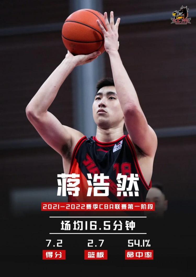 蒋浩然在上赛季已经崭露头角,本赛季再现锋芒!内线灵活的脚步和左右手柔和的手感,加上敢于对抗的决心,使他逐渐在球队中站稳脚跟。在与北京队的二次对阵中,面对北京“双塔”,蒋浩然替补上场得到全场最高分18分,展现出了丰富的得分技巧和年轻人的拼劲儿!