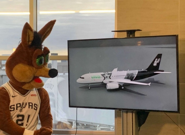 这架马刺主题的飞机型号为空客A320,会在今年春天投入运营,往返于圣安东尼奥国际机场到多个墨西哥城市的航线。