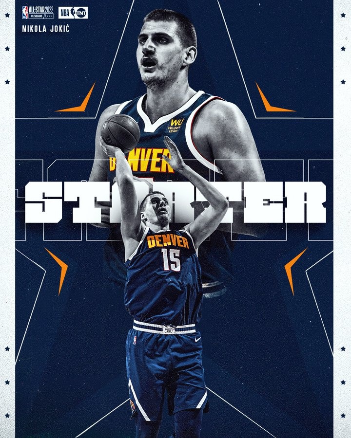 直播吧1月28日讯 全明星首发名单今日出炉,掘金中锋尼古拉-约基奇入选西部前场首发。