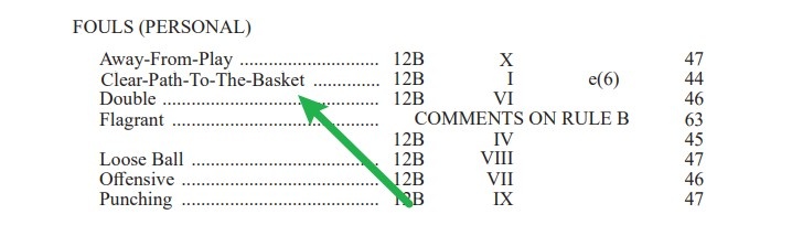在NBA规则手册中,Clear Path Foul的全名儿是“clear-path-to-the-basket foul”,“clear-path-to-the-basket(逐字翻译:清晰-路径-向-篮筐)”在定义上,是个人犯规的一种(如下图所示):
