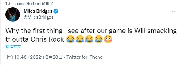直播吧3月28日讯 在正在进行的奥斯卡颁奖典礼上,著名影星威尔-史密斯掌掴主持人克里斯-洛克,引爆社交网络。