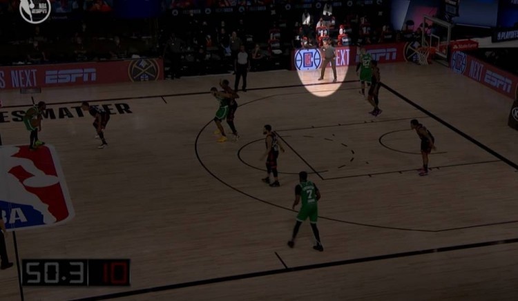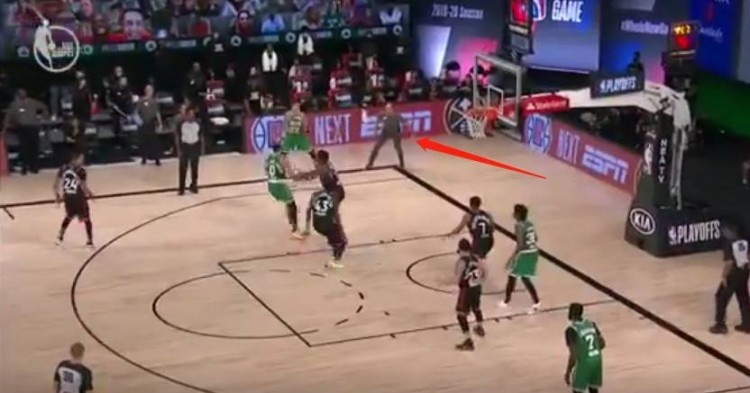 就在这个时候,塔图姆突破分球恰好传给了场边的纳斯,出现一次低级失误。