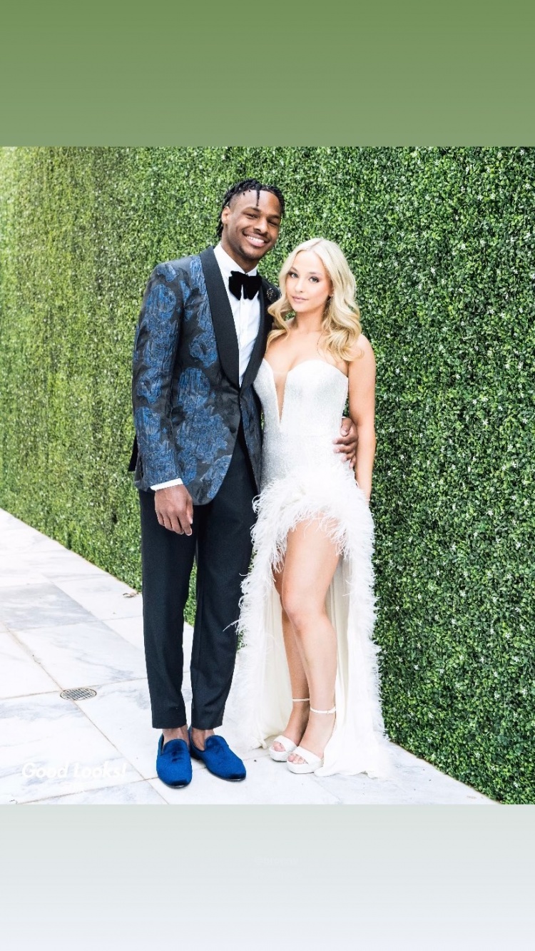 直播吧5月19日讯 湖人球星詹姆斯的大儿子布朗尼今日在个人INS,晒出他参加舞会时与女友Peyton Gelfuso的合影。