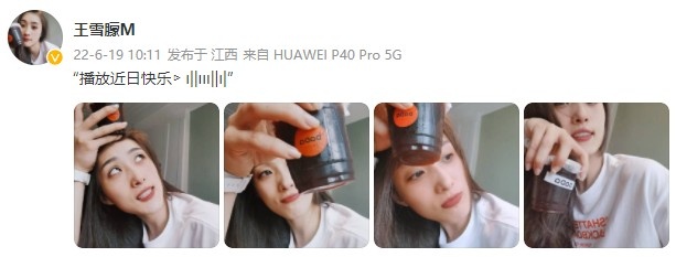 王雪朦晒出一组自拍照并写道:“播放近日快乐▷ ︎ı||ııı||ı|”