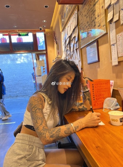 随后,李添荣女友评论道:“怎么的不放你的丑丑字啦”,并在个人微博晒出两人的幸福寄语。